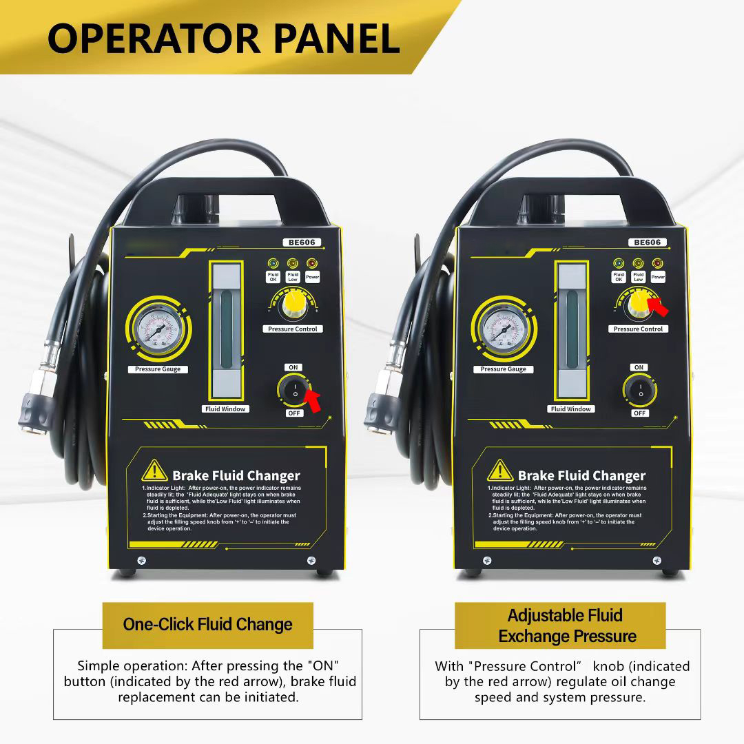The use of automotive brake fluid for more than 2 years usually carries the risk of contamination and deterioration, resulting in liquefaction pollution and precipitation, causing a decrease in the boiling point of the brake fluid, air resistance in the brake pipeline, and lack of oil in the brake pump, leading to longer distance in braking distance, poor braking performance, and even brake failure can lead to serious consequences, so it is necessary to regularly check and maintain brake fluid. The traditional method of changing brake fluid is operated by at least two people. One person is stepping on the brake in the driver's cab, while the other person is cooperating to drain oil under the car chassis. This method not only causes waste brake fluid to leak all over the ground, seriously polluting the environment and consuming labor and time. And it is easy to penetrate the air and moisture, contaminate the brake fluid, and affect braking performance. So the repair shop adopts new brake fluid replacement equipment, which only requires one person to operate.Convenient, efficient and cost-effective schedule working hours and improve efficiency, enhance customer experience, and enable more brake maintenance services to be completed, resulting in higher profits.